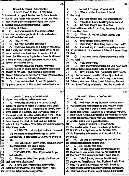 They also planned on opening a Trump Tower in Moscow. However, Trump said in a deposition that the plan fell through after media reports began questioning Trump's net worth. The partners with Russian ties in the United States backed out.