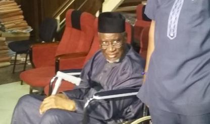 A Former PDP Chairman, Mohammed Bello arrived the Federal High Court Abuja in a wheel chair for his trial in the ongoing investigation of the alleged diversion of $2.1 billion earmarked for the procurement of arms for the military.