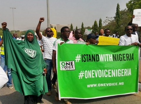 The co-convener of Bring Back Our Girls movement, Aisha Yesufu, and former chairman of the Human Rights Commission, Chidi Odikalu, have led the #IStandWithBuhari anti-federal government protesters to the entrance of the Aso Rock presidential villa in Abuja.