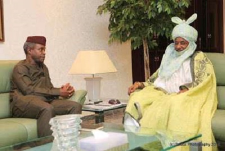 Acting President, Yemi Osinbajo went into a closed door meeting with the Emir of Kano, Mohammed Sanusi II at the Presidential Villa, Abuja today. Both of them met behind closed doors according to Vanguard.