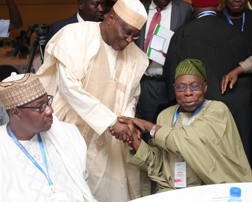 In some photographs shared by Atiku’s Media Aide, Paul Ibe, both former leaders perceived to be at loggerheads were seen exchanging pleasantries by shaking hands.